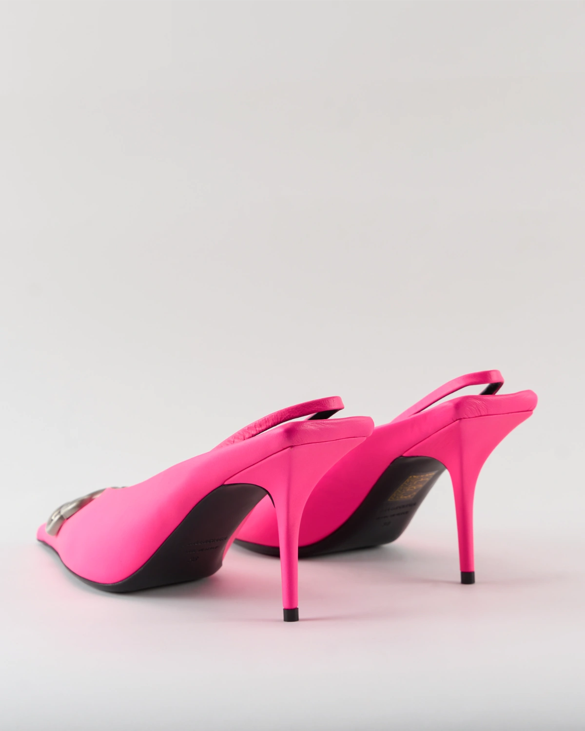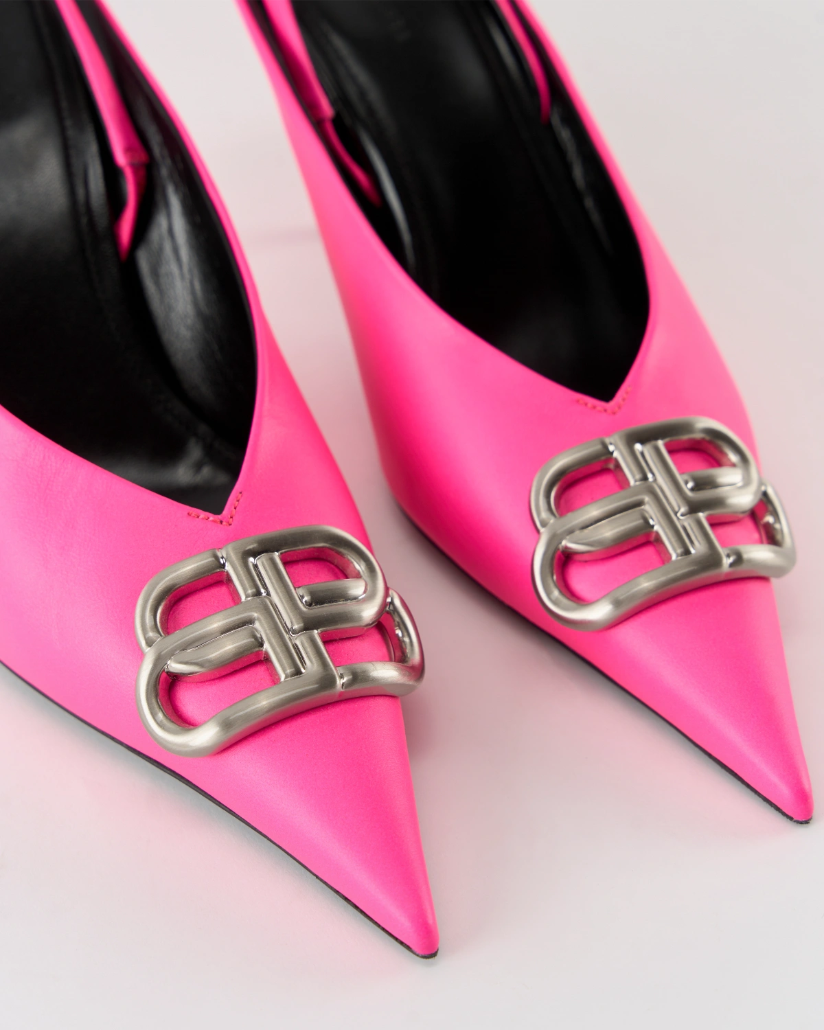 The Balenciaga Square Knife BB Slingback Mules sharpen classic elegance with a bold, architectural edge. The pointed-toe silhouette meets the signature BB slingback strap and a sharply squared knife-like profile – giving a confident, sculptural finish that reads as both avant-garde and refined. These mules stand out as statement footwear for polished, fashion-forward looks.