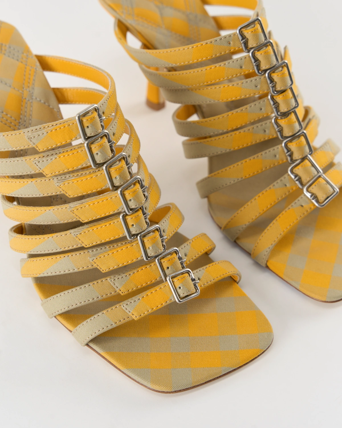 The Burberry Carmine heels in signature check print bring heritage pattern into contemporary elegance – a polished fusion of classic brand identity and modern footwear design. With a refined silhouette and subtle check‑print leather, these heels ooze understated sophistication with a nod to timeless British luxury.