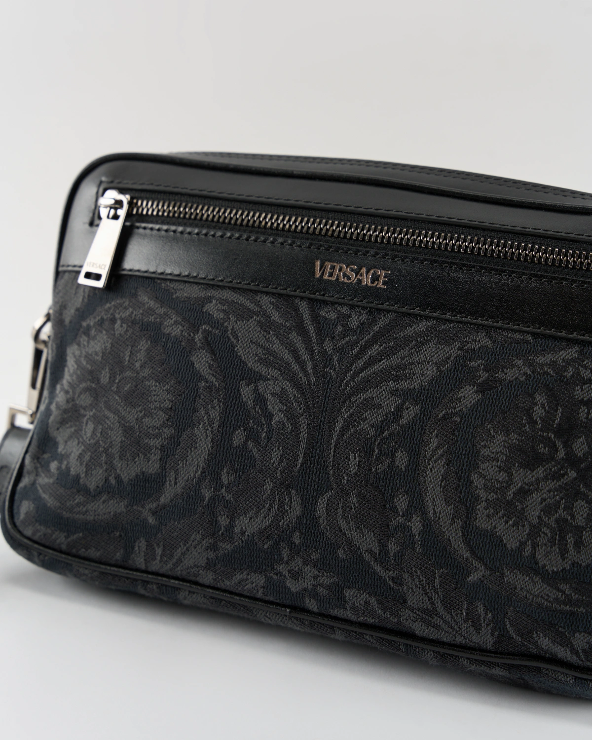 The Versace Pouch exudes bold Italian luxury with a sleek, modern silhouette. Perfect for carrying essentials, it combines functional elegance with the brand’s iconic statement-making style.